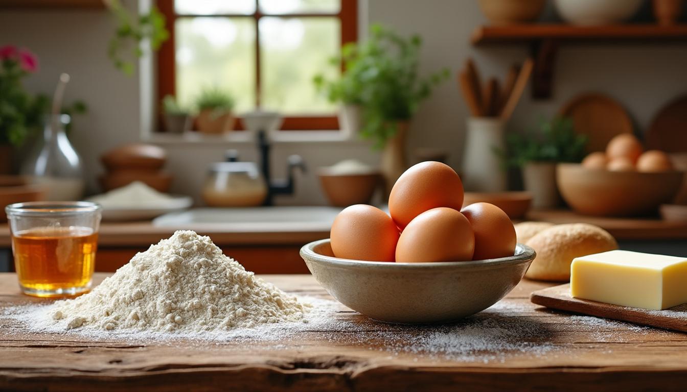 Tableau récapitulatif des ingrédients essentiels pour un quatre-quarts traditionnel